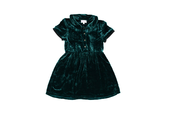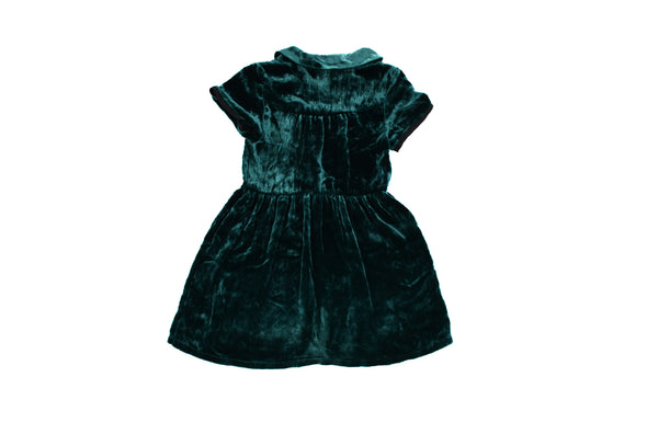 • Dark green crushed velvet silk blend short-sleeved dress