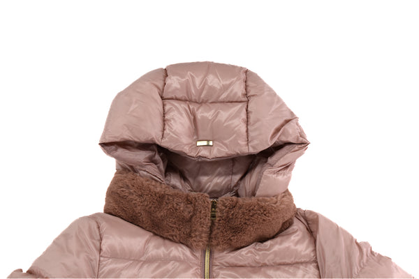 • Light pink long down hooded coat