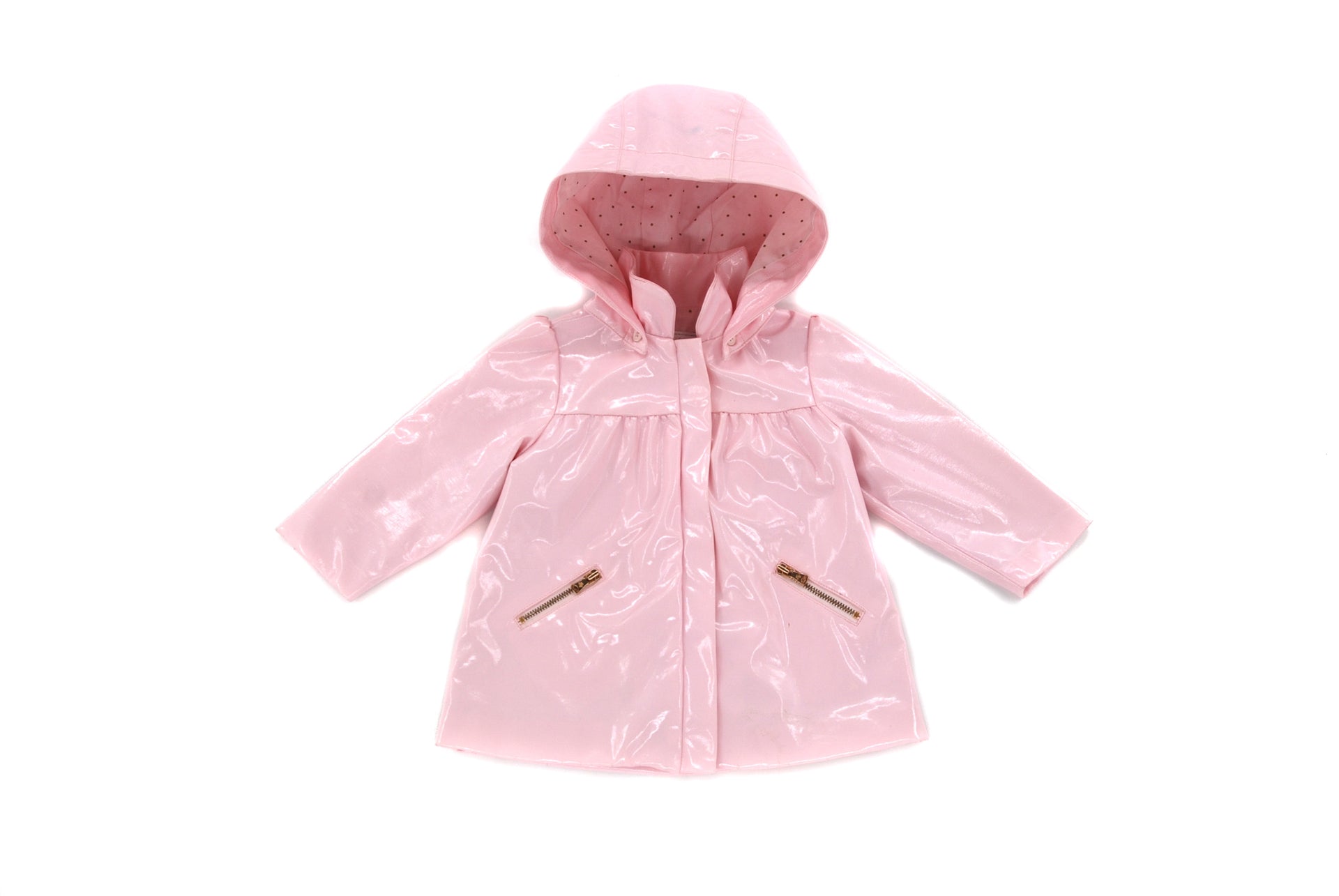 • Pink hooded raincoat