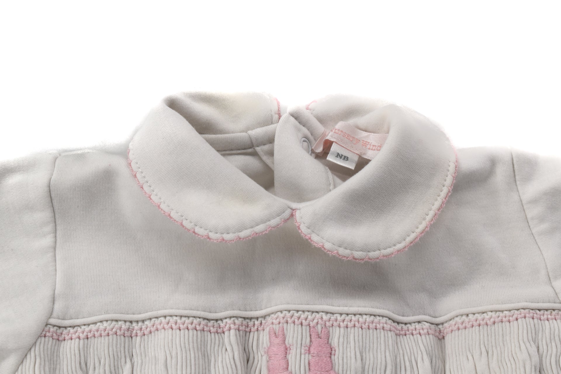 • Pink & white smocking detail at top